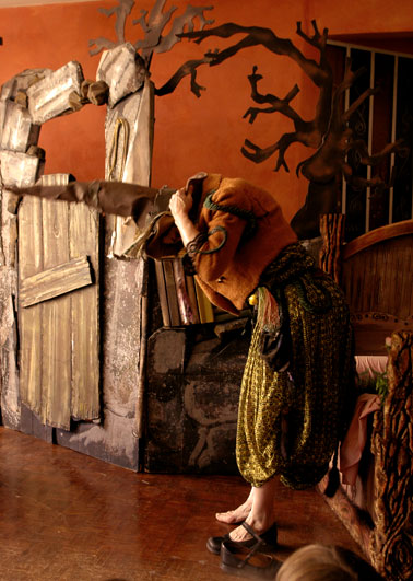 Quartz rend visite à sa marraine. Cette marionnette est manipulée par un marionnettiste qui reste caché et qui n'apparaîtra qu'à la fin du spectacle dans le rôle du grand-père - mandoliniste de Quartz.