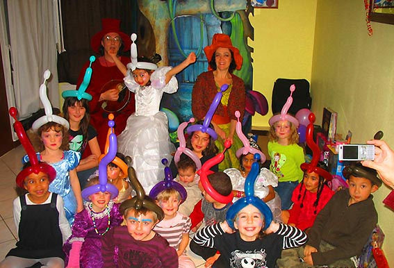 Le spectacle inter-actif de sculpture sur ballons commence comme s'il s'agissait d'une animation.